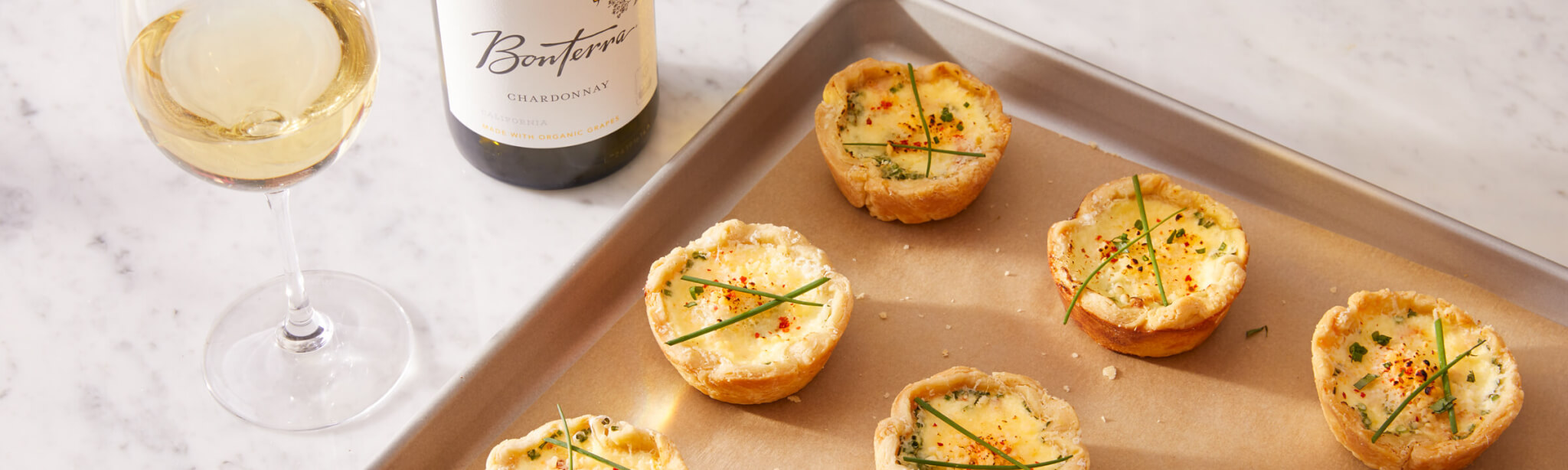 Comforting and easy to make, our mini ham and cheese quiche are a brunch no-brainer. Plus, Bonterra’s organically farmed Chardonnay—with its bright, clean minerality and vibrant lemon notes—is the ultimate pairing for these cute, creamy quiche.